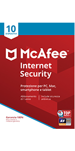 McAfee Internet Security Per 10 PC – per 1 anno Versione ESD Multilingua Inviamo per email fattura, product key e link ufficiale dal quale scaricare il software